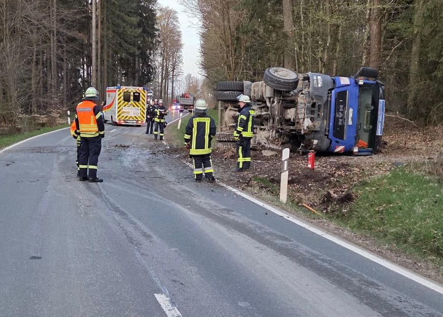 Ein LKW kam im Graben auf der Seite zum liegen. Bei unserem Eintreffen war der Fahrer bereits befreit und wurde vom Rettungsdienst behandelt.